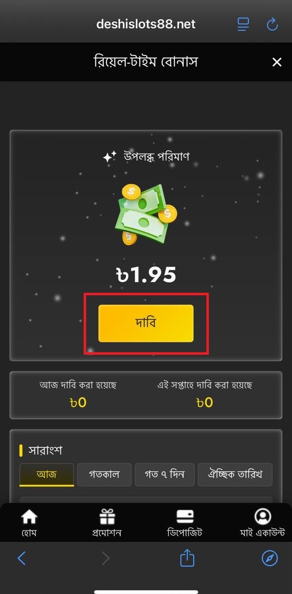 ৪. একটি পপ-আপ ম্যাসেজ প্রদর্শিত হবে, যা নিশ্চিত করবে যে বোনাসটি সফলভাবে দাবি করা হয়েছে।