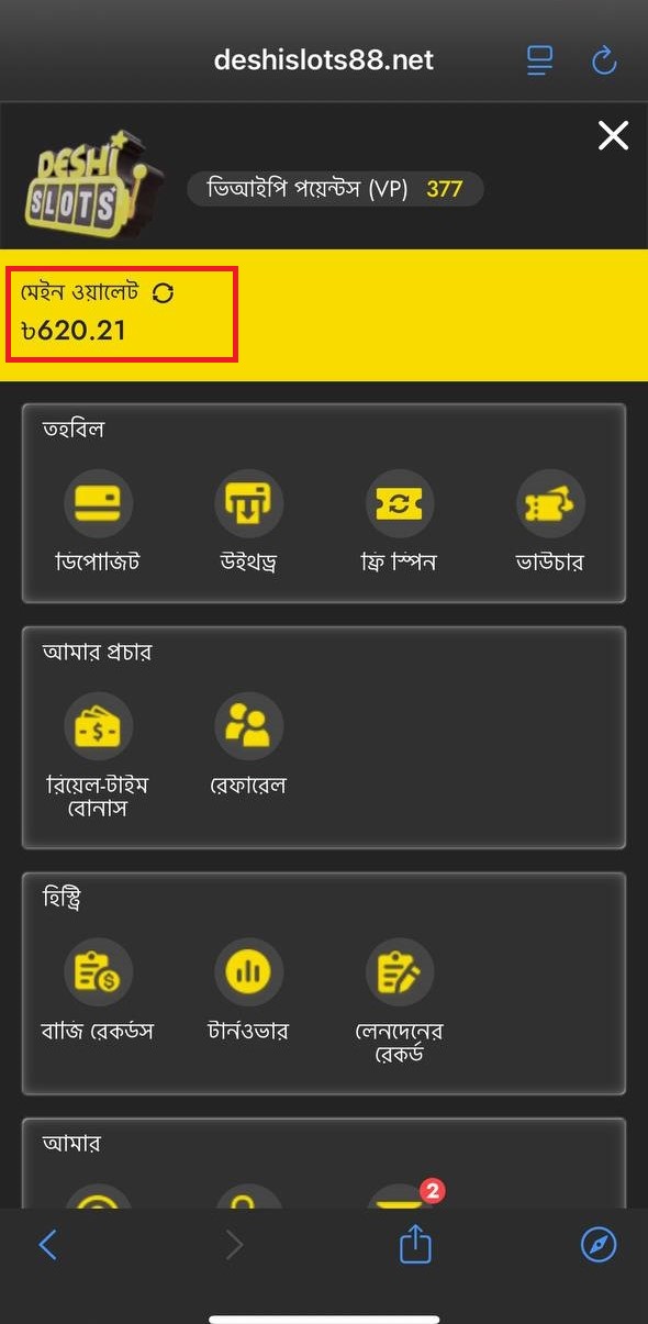 ৫. মেইন ওয়ালেট -এ ফিরে যান এবং পেজটি রিফ্রেশ করুন, যাতে নিশ্চিত হতে পারেন যে বোনাসটি যোগ হয়েছে।