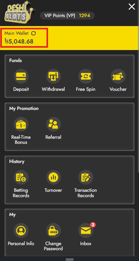 5. Return to the Main Wallet and refresh the page to check that the bonus has been credited.