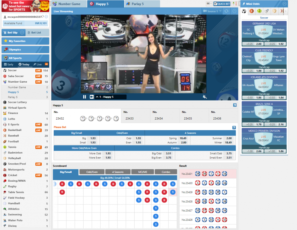 • More Odd/More Even – From the 5 numbered balls drawn, if more than three of these numbers are odd numbers, bets on Odds win. If more than three of these numbers are even numbers, bets on Evens win.