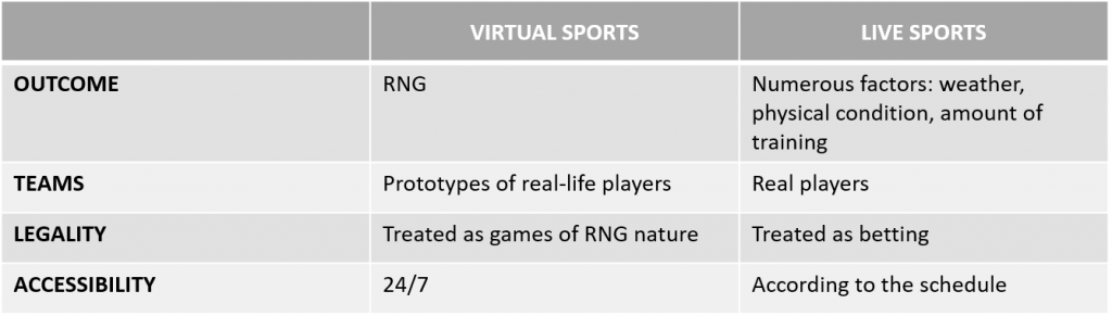 The main difference between virtual sports and live events is speed and frequency. Live betting is associated with long waiting times between matches or races. Virtual sports, on the other hand, are available around the clock, with no holidays, offseasons, or other interruptions. The process is much quicker too, so the bettors can place more wagers on virtual sports than they would when betting.